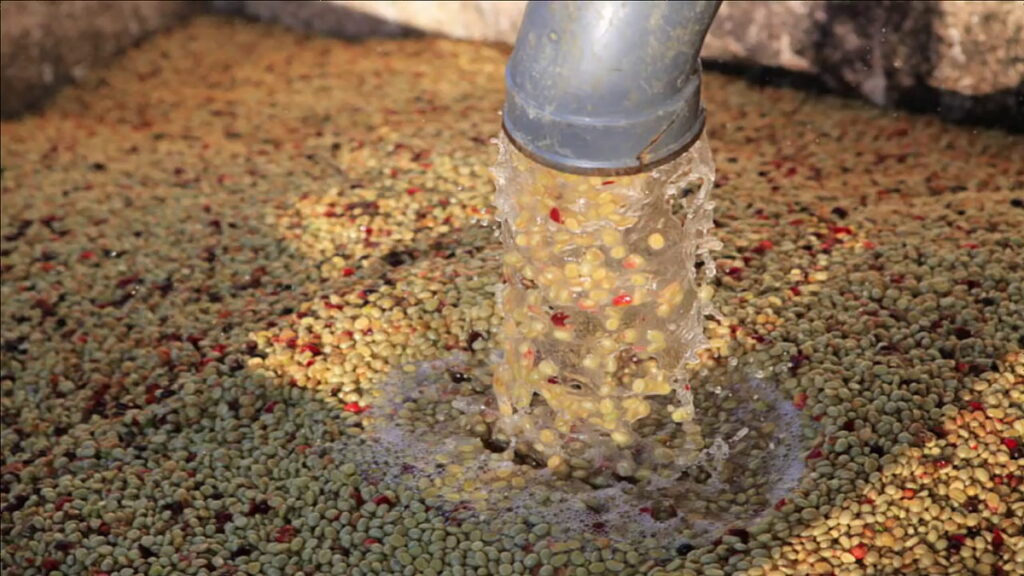Washed coffee processing is similar to natural processing, but organic matter is stripped off of the coffee bean within days of the coffee cherry being plucked from the tree and then washed with water before they are dried. This removes any impurities and gives the coffee a cleaner taste.